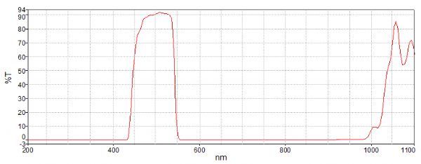 Filtro verde-azul paso banda 500nm para objetivo de cámara de visión artificial/industrial/científica