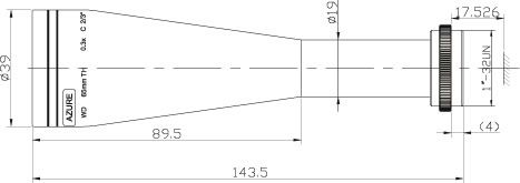 Objetivo telecéntrico, 0.3x, de 65mm de distancia de trabajo, formato dos tercios de pulgada y 5 megapíxeles