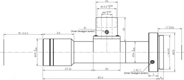Objetivo telecéntrico, de tipo coaxial, 1.5x, de 65mm de distancia de trabajo, formato dos tercios de pulgada