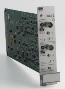 The ECS75 Eddy current sensor conditioner is implemented on a 19''board and can include up to 3 independent channels. The gain of each channel is generally set when the Eddy Current Sensor is embedded in the Piezo Mechanism.